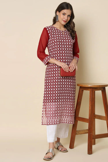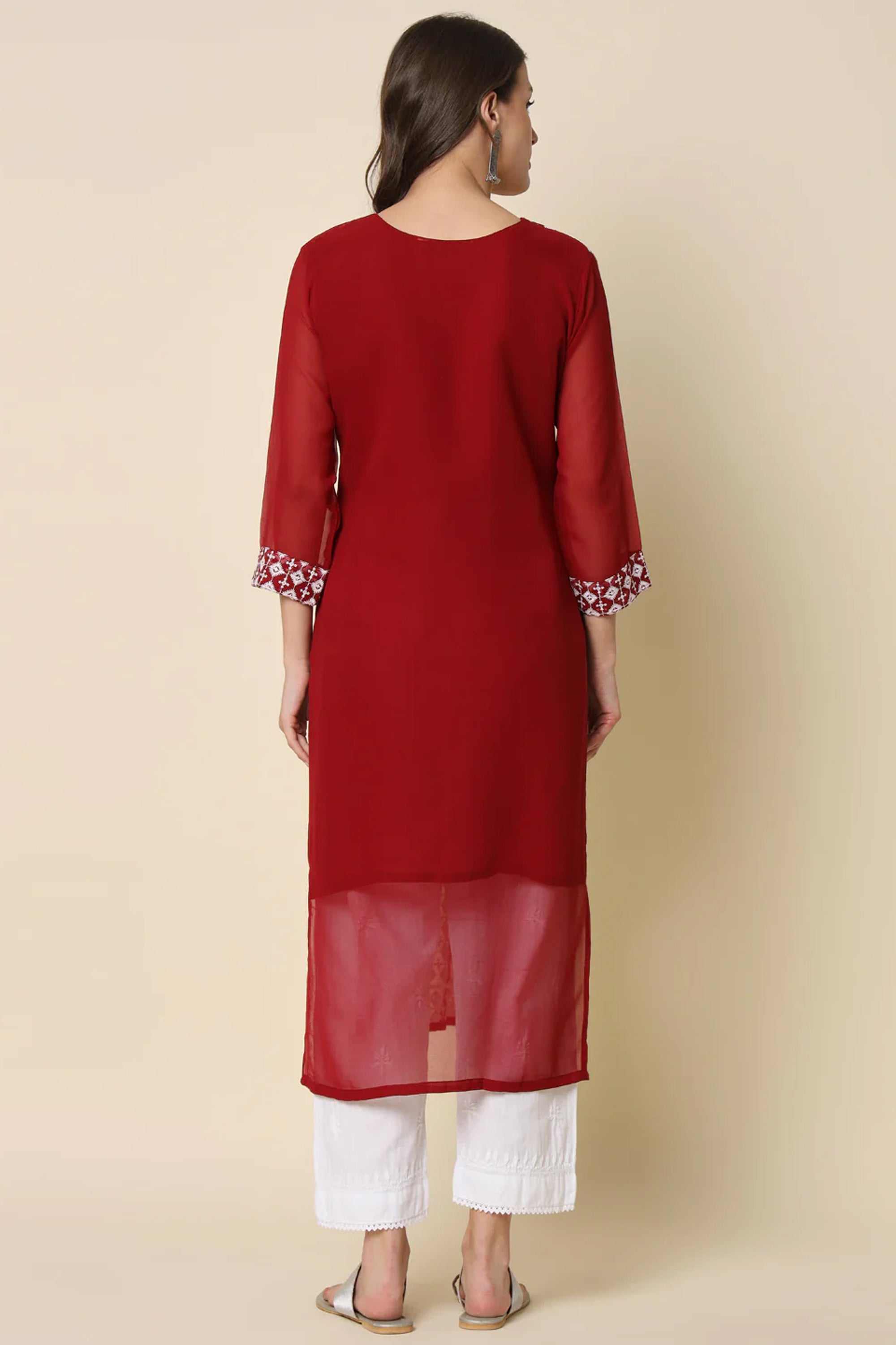 Georgette Fabric Maroon Daily Wear Readymade Kurti