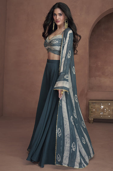 Georgette Fabric Teal Color Party Wear Printed Readymade Indo Western Dress