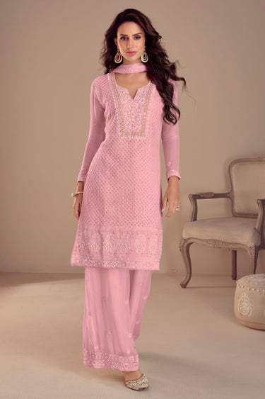 Georgette Pink Color Embroidered Readymade Palazzo Salwar Suit