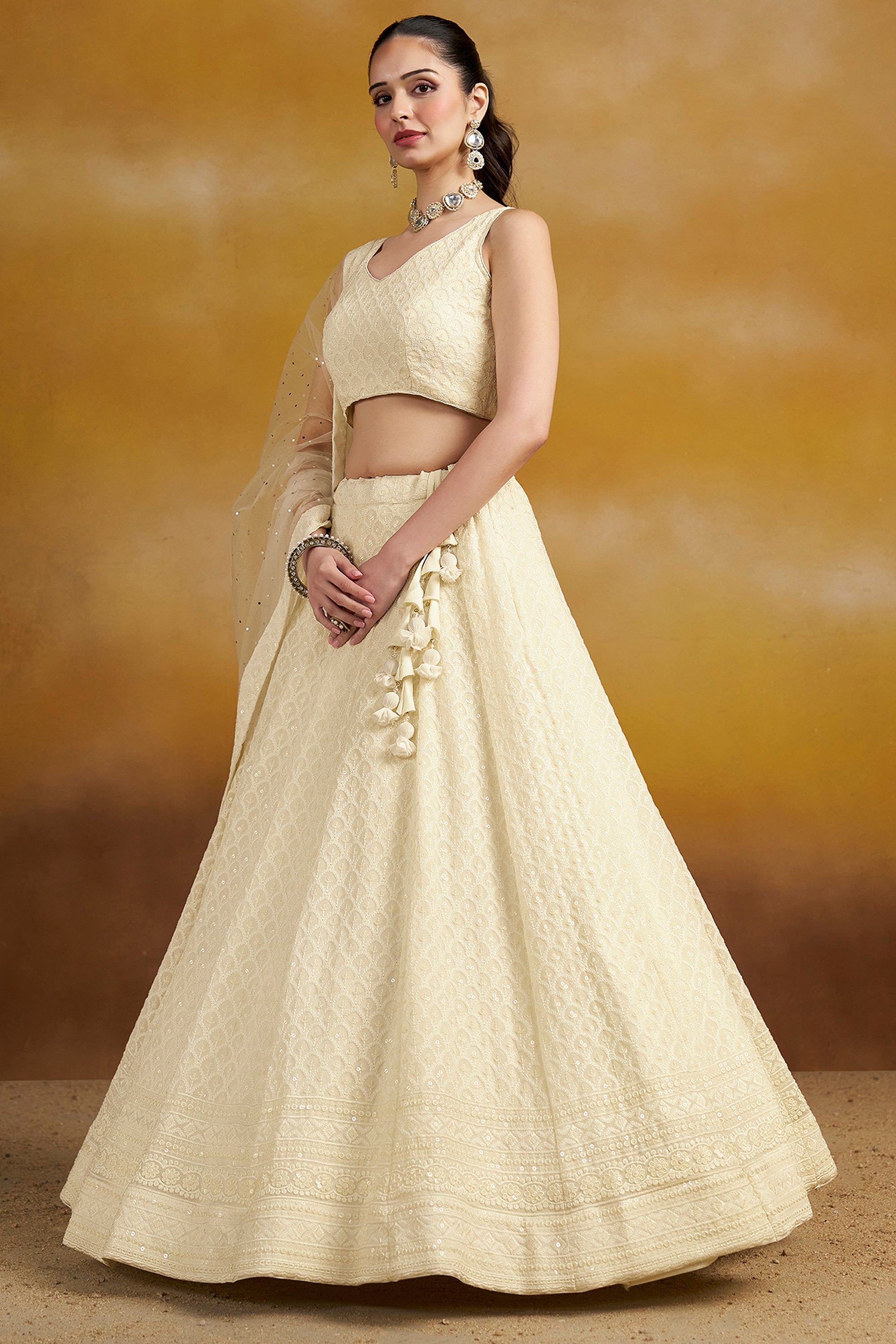 Georgette White Wedding Wear 3 Piece Lehenga Choli