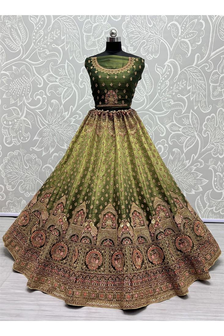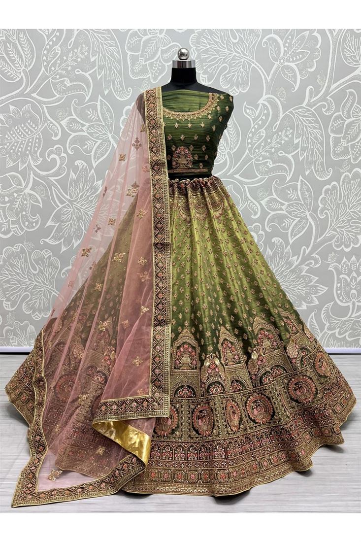 Glamorous Green Color Net Bridal Lehenga with Sequins Work For Wedding