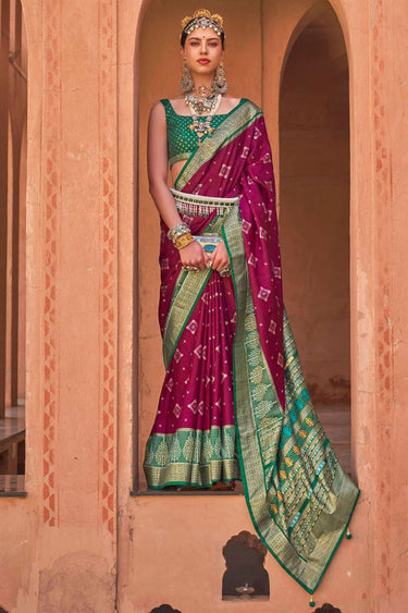 Glittering Burgundy Color Art Silk Fabric Casual Patola Saree