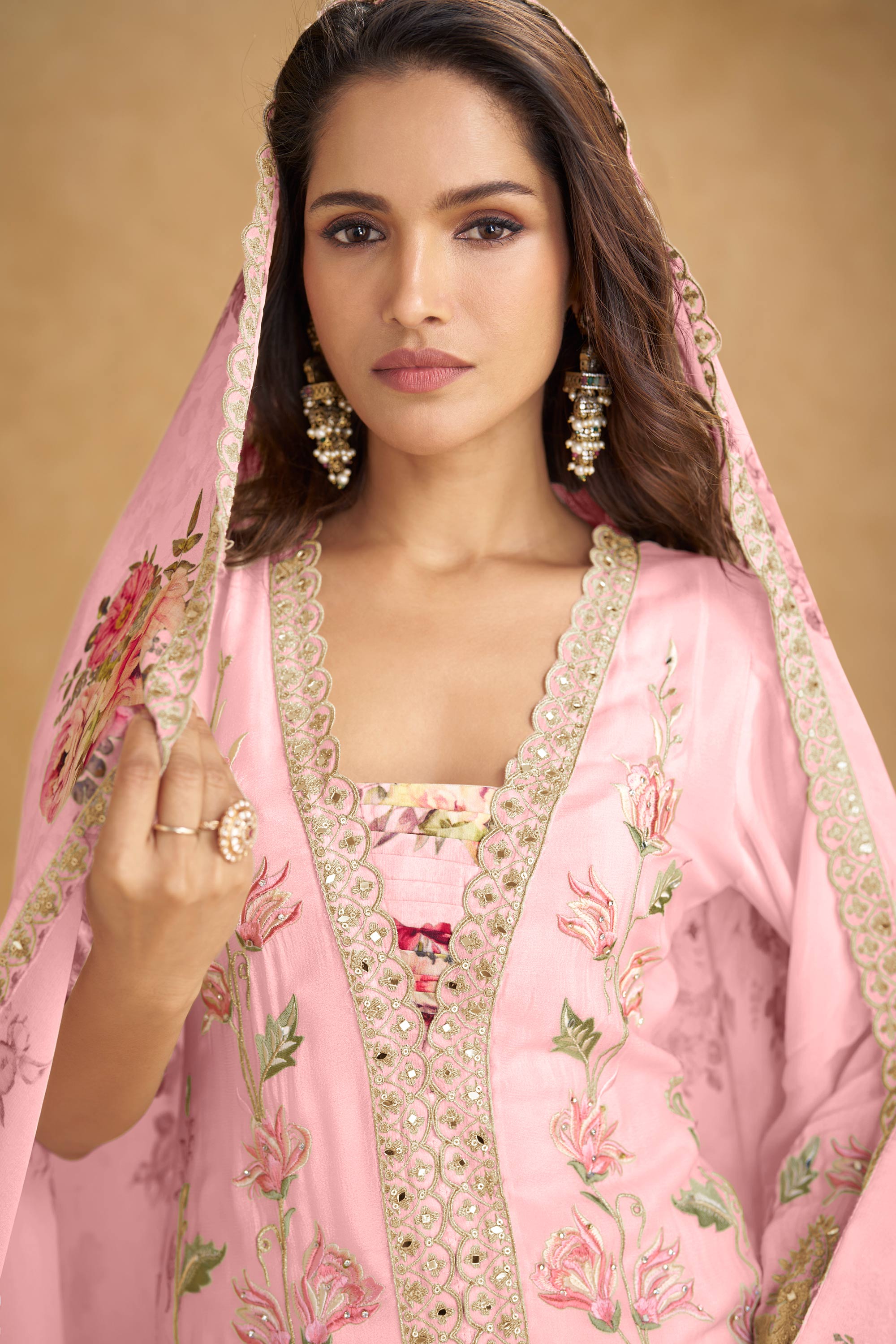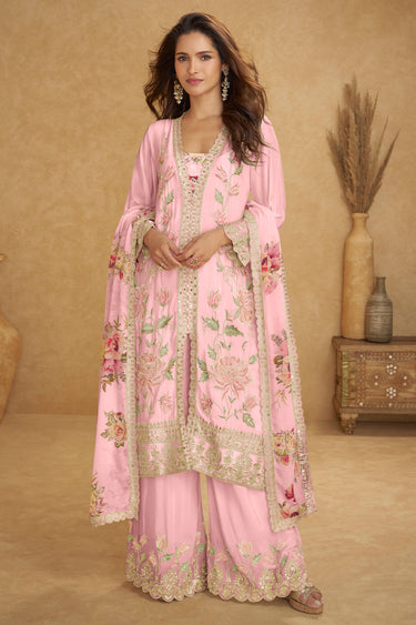 Add a touch of grace to your wardrobe with the Chinon Designer Readymade Palazzo Salwar Suit With Dupatta. Made with soft and durable chinon fabric, this set blends tradition and contemporary appeal. Designed for comfort, the outfit features a stylish palazzo for ease of movement and an elegant dupatta that complements its chic look. Ideal for family gatherings, cultural events, or festive occasions, this ready-to-wear salwar suit ensures you look polished with minimal effort. Pair it with statement jewelry for an unforgettable outfit!