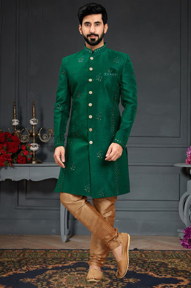 Gorgeous Silk Fabric Wedding Wear Readymade Indo Western For Men