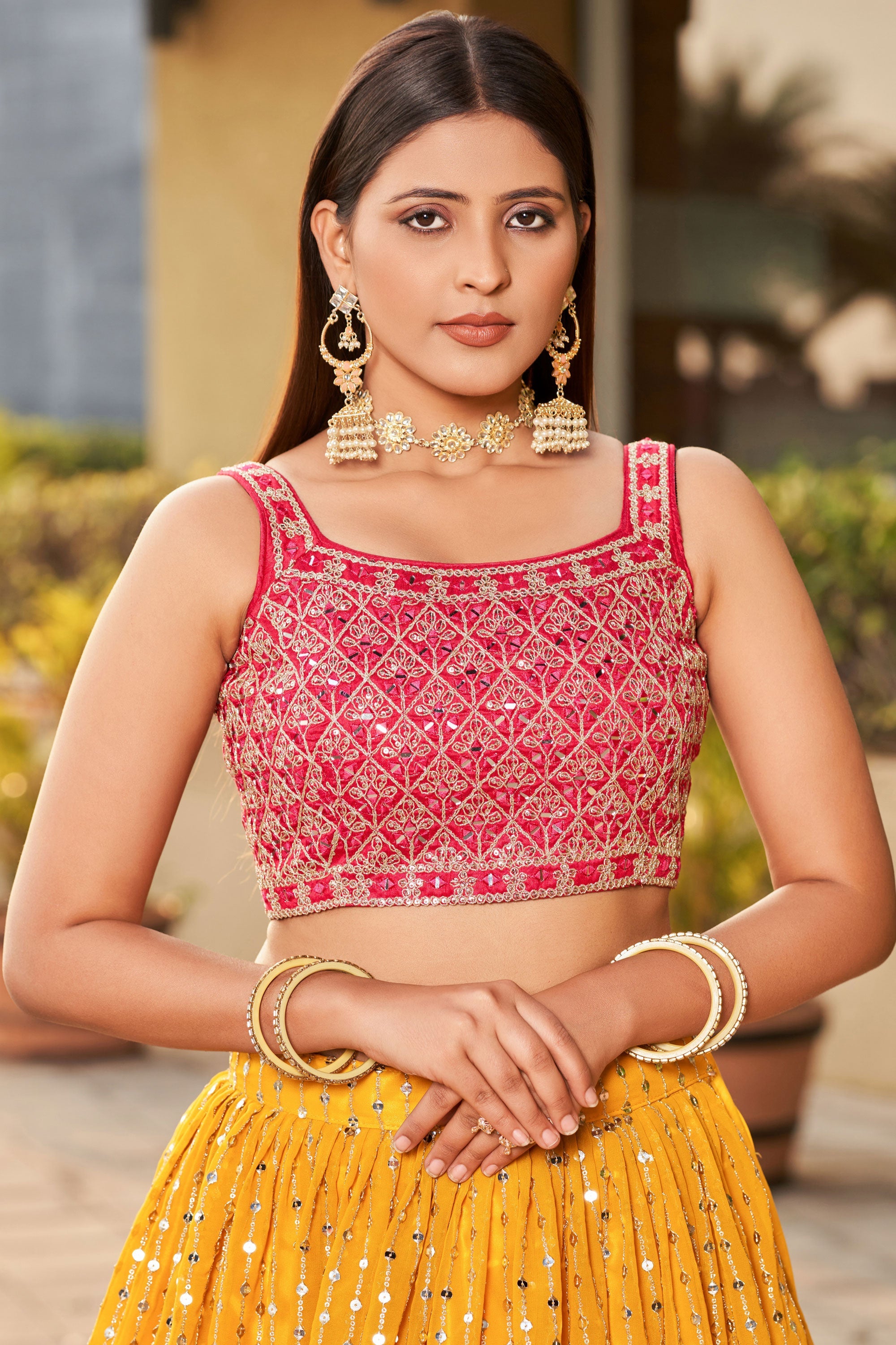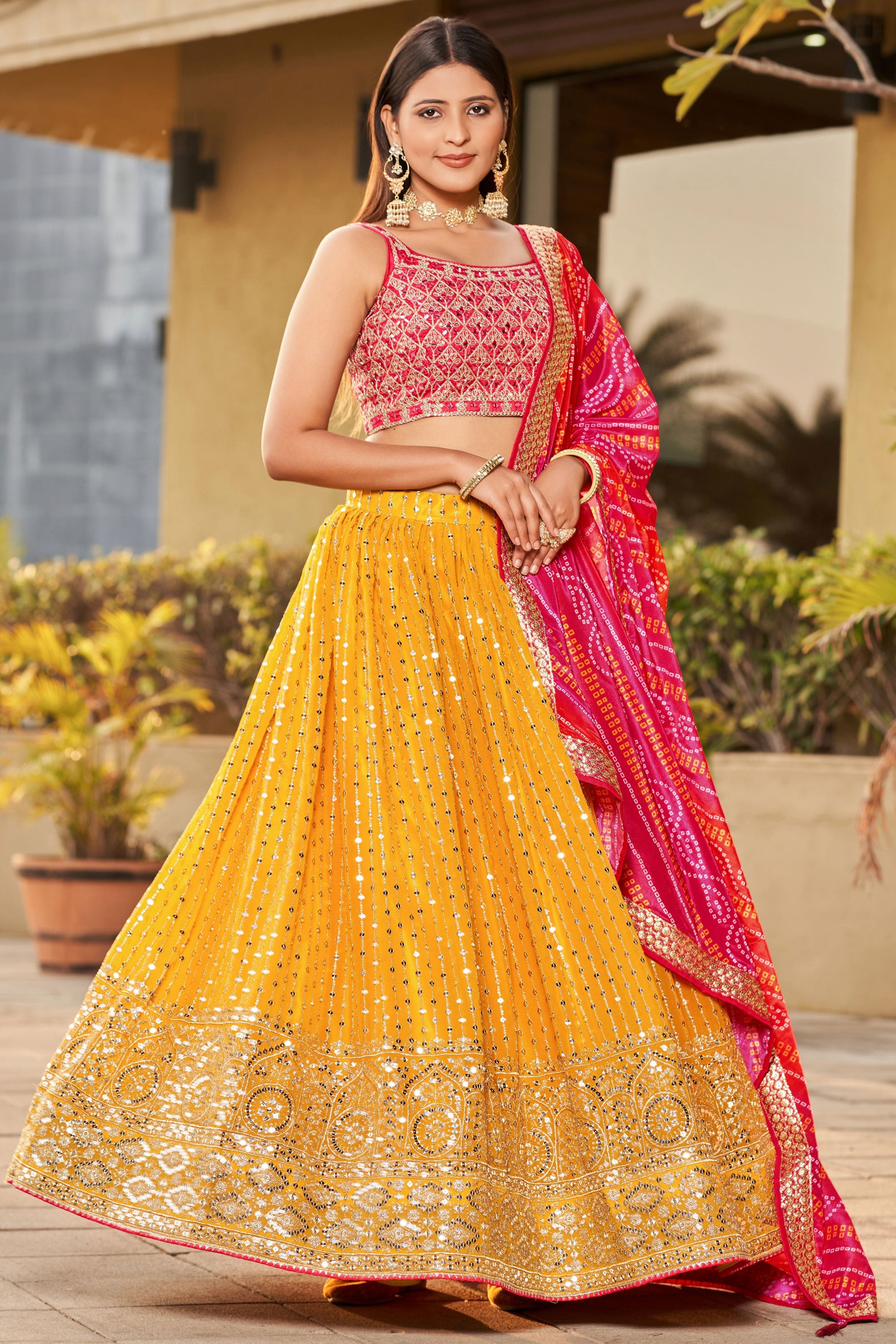 Graceful Georgette Fabric Yellow Color Lehenga With Sequins Work