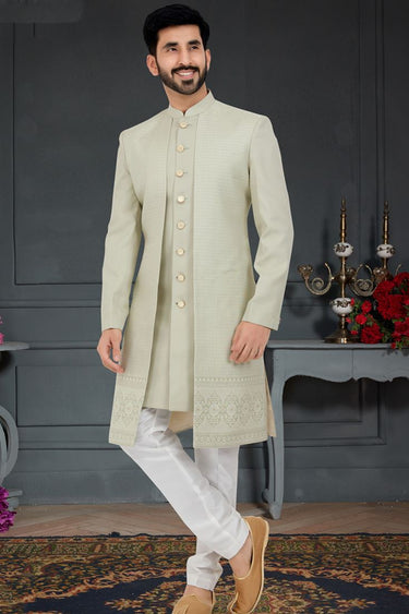 Graceful Olive Color Jacquard Fabric Italian Indo Western