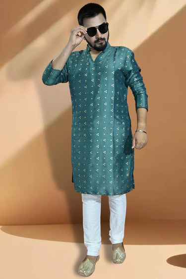 Green Art Silk Fabric Trendy Readymade Kurta Pyjama For Men