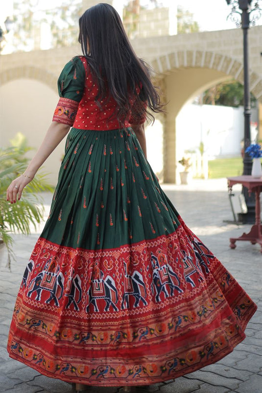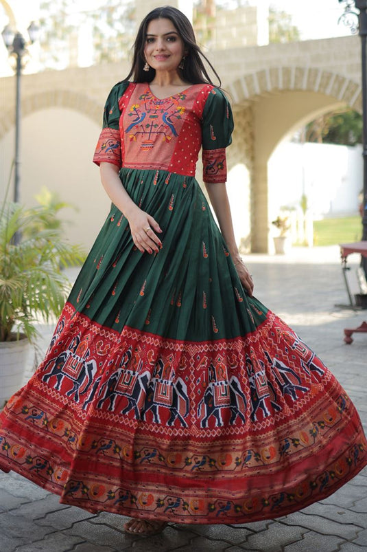 Green Color Art Silk Fabric Supreme Patola Printed Gown