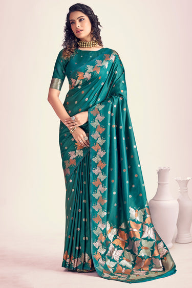 Green Color Gorgeous Printed Banarasi Style Silk Saree