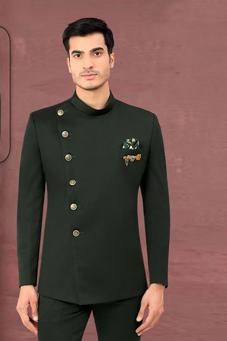 Green Color Rayon Fabric Wedding Style Royal Jodhpuri Jacket