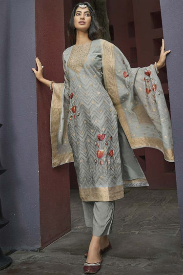 Grey Color Digital Printed Designs On Jacquard Fabric Daily Wear Beatific Salwar Suit
