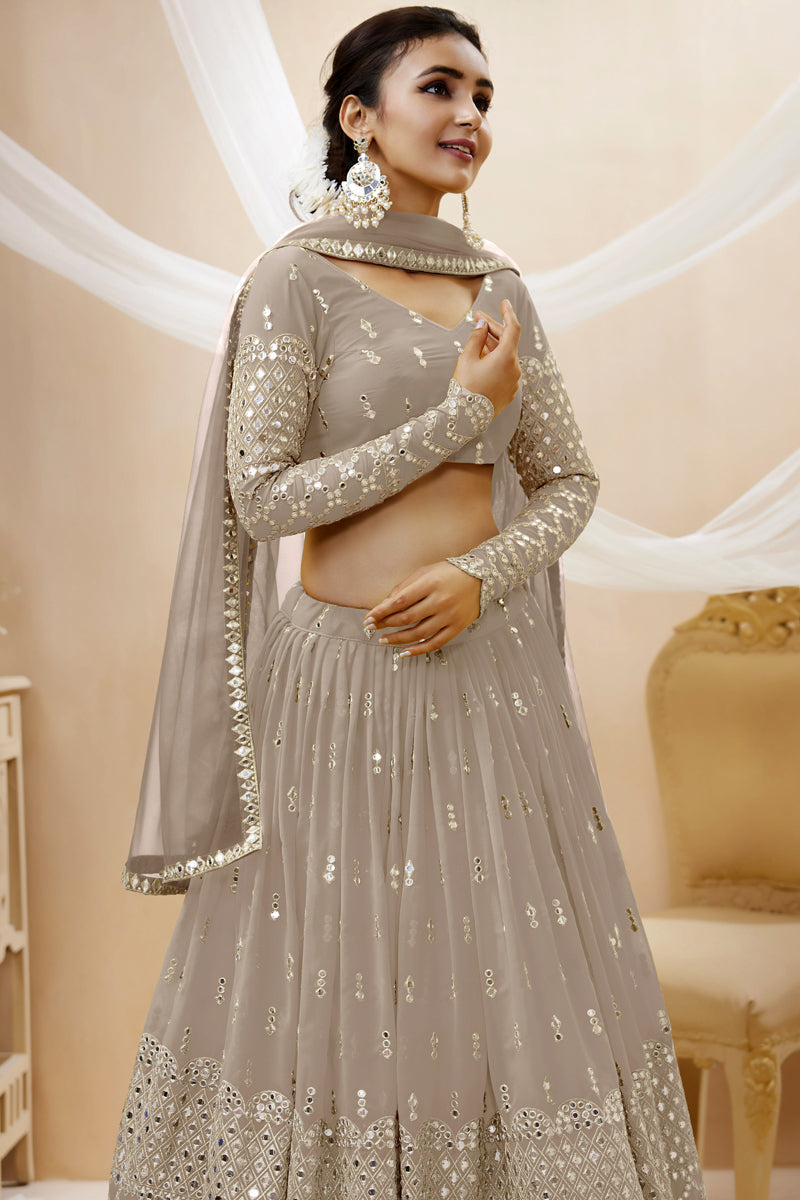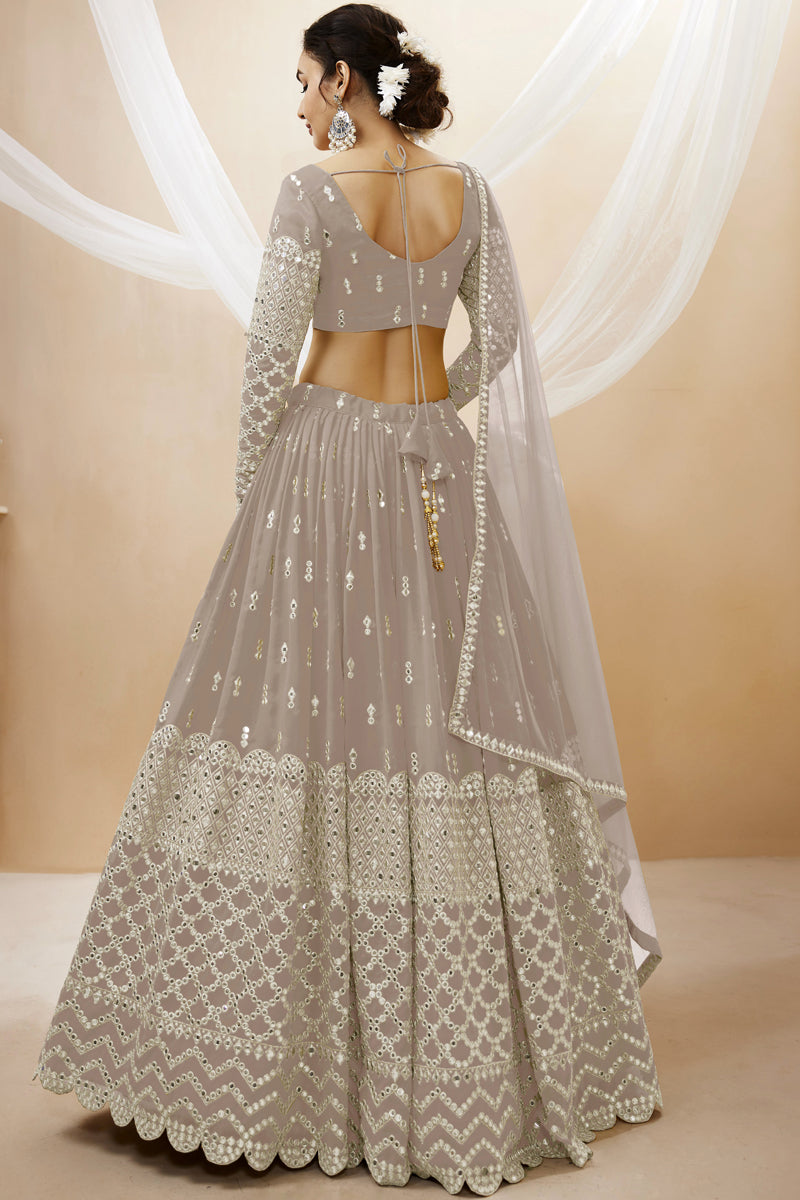 Grey Color Embroidered Work On Georgette Fabric Beatific Lehenga Choli
