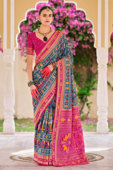 Grey Color Glamorous Art Silk Printed Saree