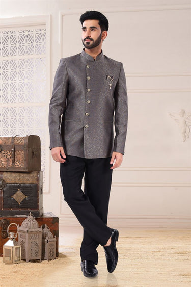 Grey Color Jacquard Fabric Wedding Wear Designer Readymade Jodhpuri Suit For Men