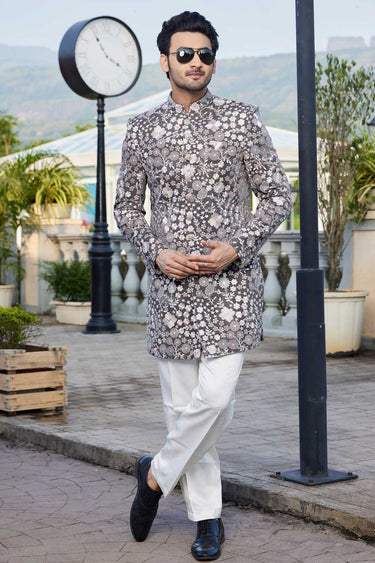 Elevate your style with this impeccably tailored Indo Western, perfect for weddings, functions, and sangeet. Featuring a royal jacket, a complementing kurta, and trousers, this ensemble blends tradition with modern sophistication. Note: Slight color variations may occur due to digital photography. Make every celebration unforgettable with timeless charm!