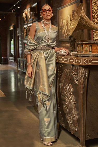 Grey Color Weaving Work Art Silk Fabric Incredible Saree