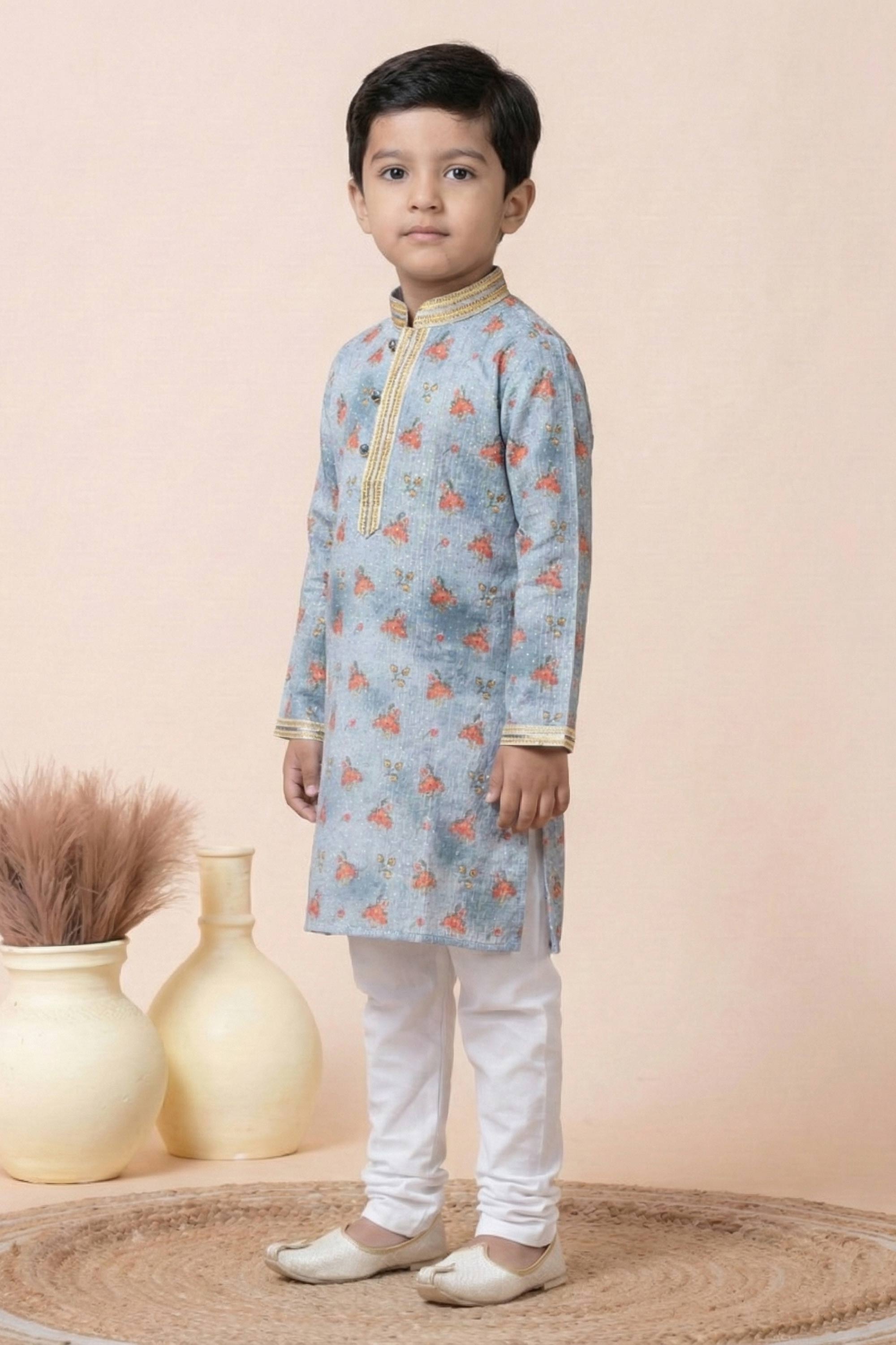 Grey Festive Wear Cotton Readymade Kurta Pyjama For Boys