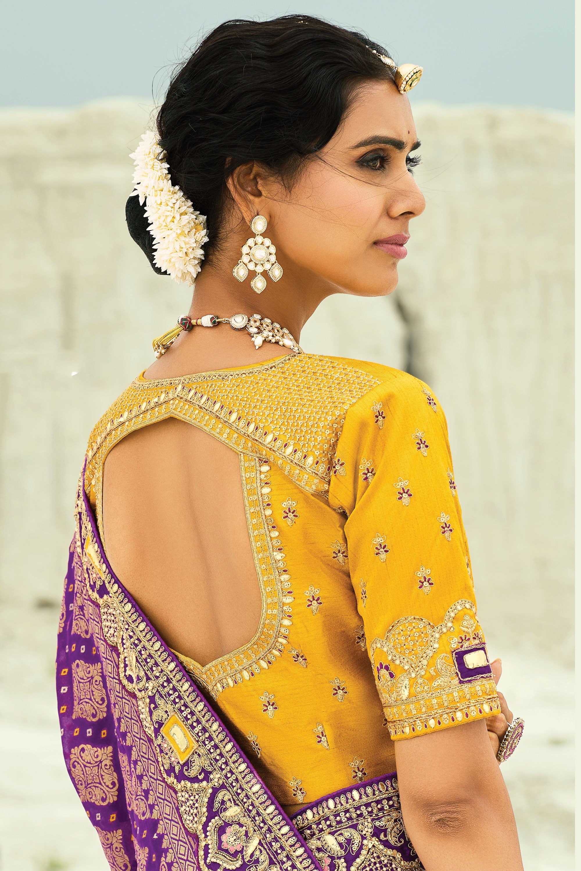 Handcrafted Purple Pure Georgette Bandhej Saree With Moti Handwork Border