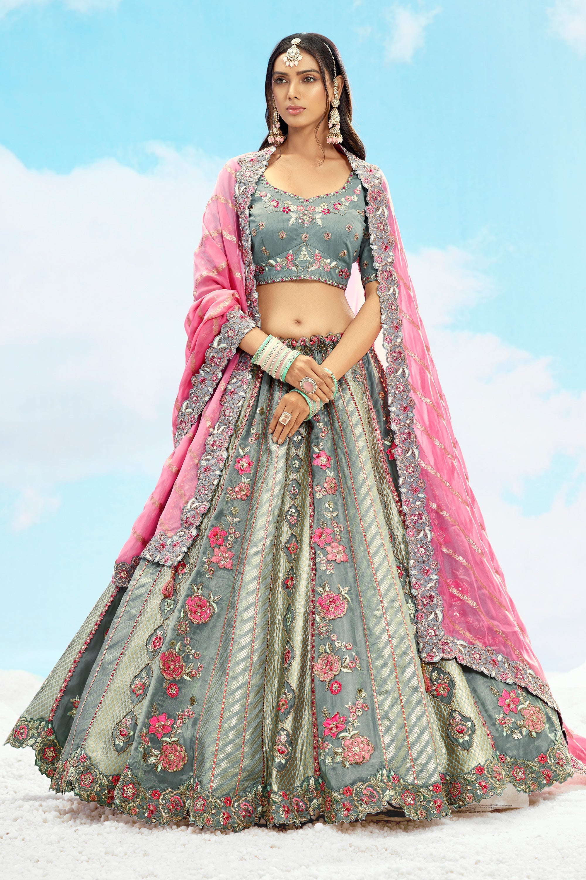 Heavy Embroidered Bridal Lehenga Choli In Grey Color