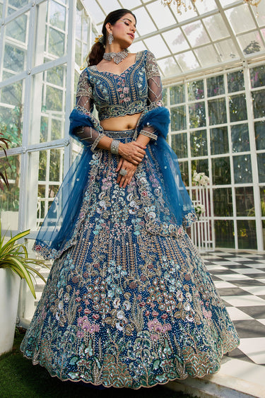 Heavy Embroidered Navy Blue Color Wedding Wear Designer Lehenga Choli