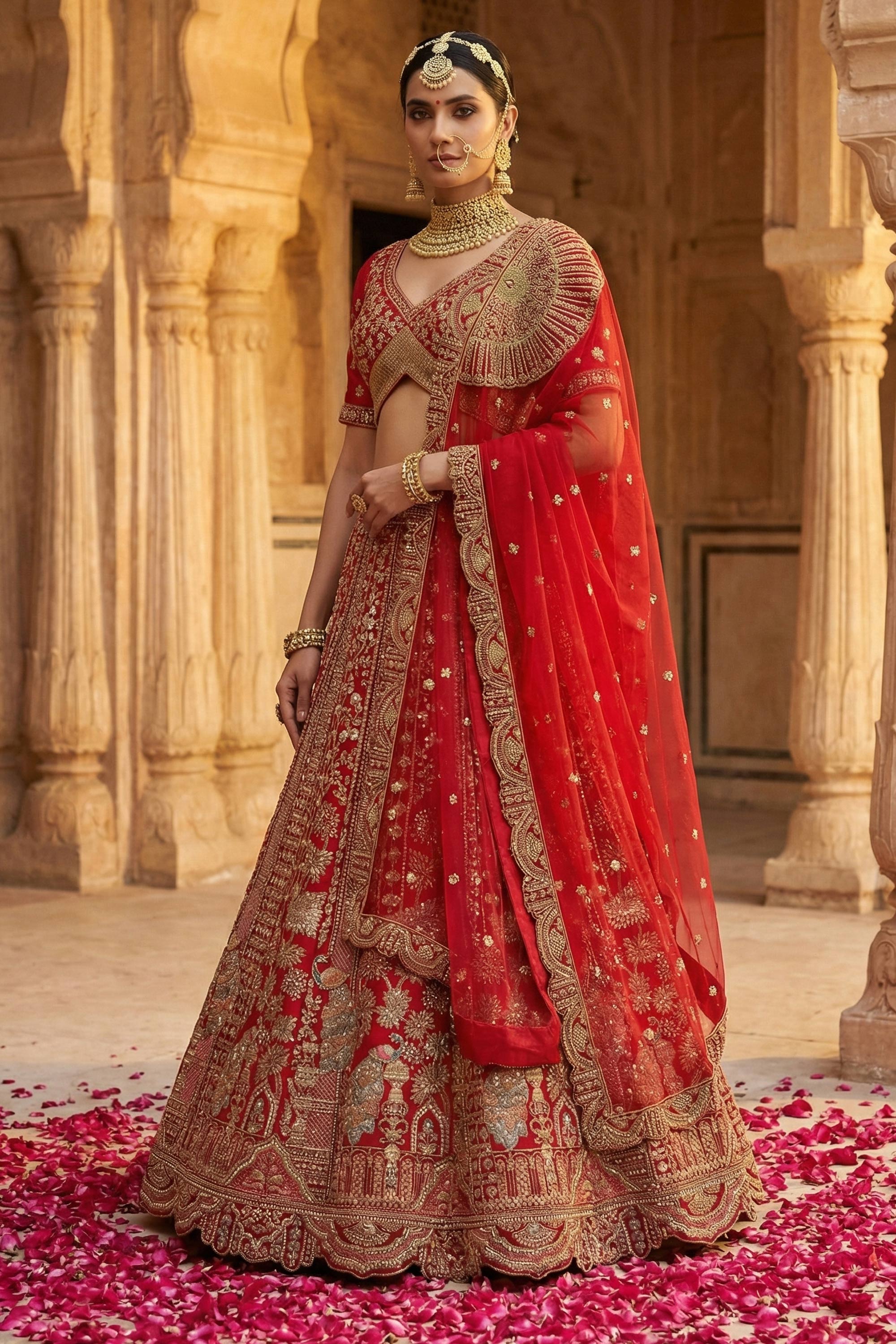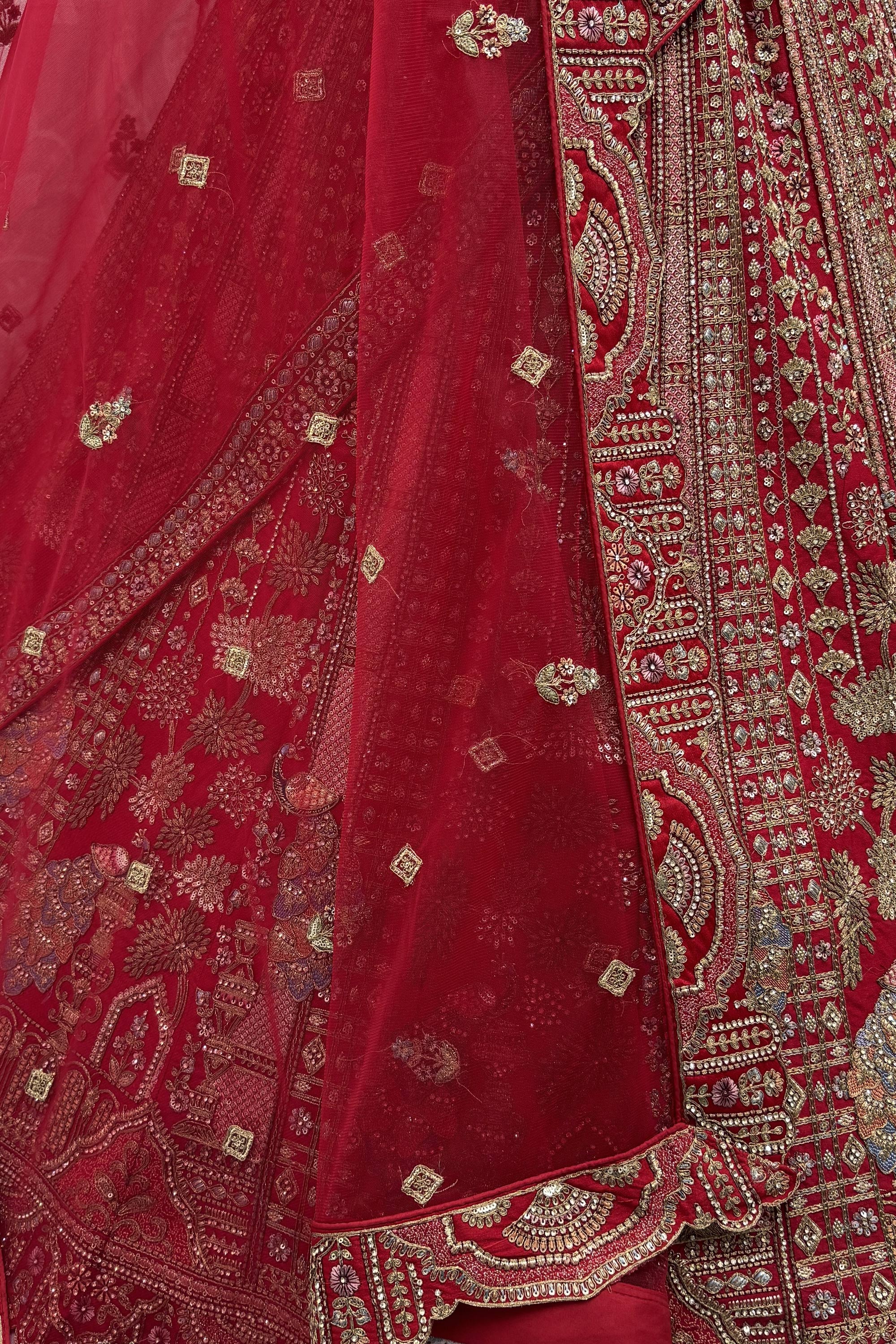Heavy Embroidered Silk Fabric Red Bridal Lehenga Choli