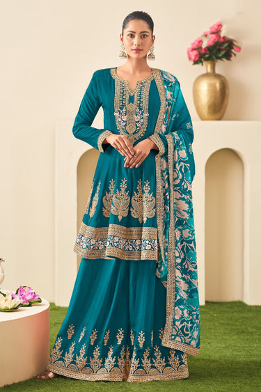 Introducing the elegant Embroidered Chinon 3 Piece Readymade Salwar Suit, perfect for any occasion. Made with high-quality Chinon fabric, this suit boasts intricate embroidery work that adds a touch of sophistication and style. The set includes a fully stitched kurta, churidar, and a matching dupatta. The breathable fabric ensures comfort throughout the day while the timeless design guarantees that you'll stand out in any crowd. Whether attending a wedding, a festival, or an evening gathering, this salwar suit promises to enhance your look effortlessly. Available in multiple sizes to fit every body type. Treat yourself or gift this stunning outfit to someone special!