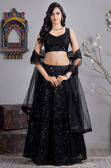 Heavy Sequins Work Black Color Lehenga Choli In Satin Silk Fabric