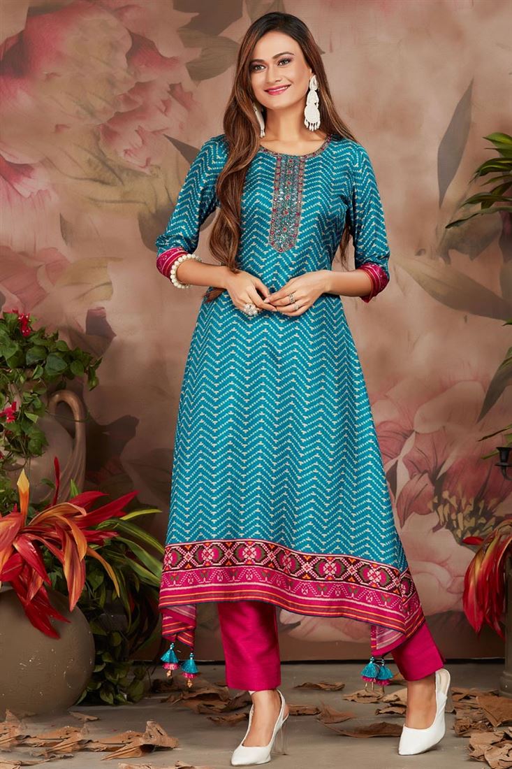 Imposing Art Silk Fabric Kurti In Cyan Color