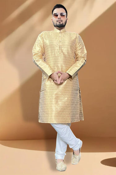 Jacquard Fabric Wedding Wear Readymade Beige Color Kurta Pyjama For Men