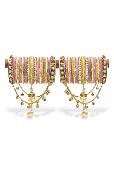 Lavender Color Alloy Material Princely Bridal Jhoola Style Bangle Set For Two Hands