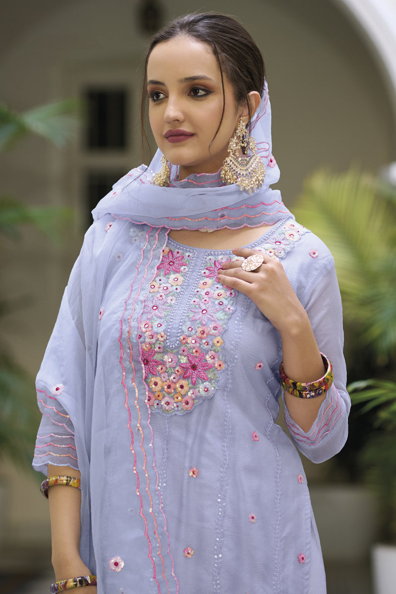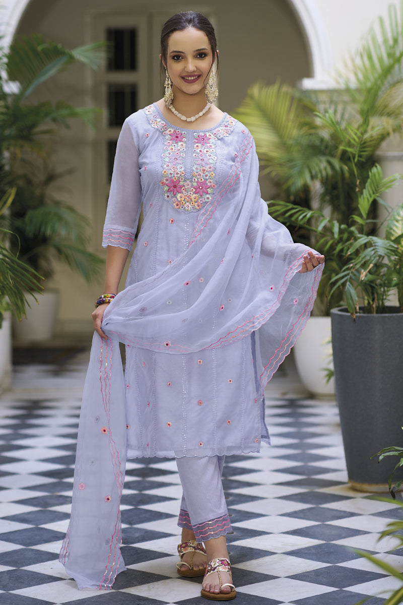 Lavender Color Function Wear Embroidered Readymade Suit In Organza Fabric