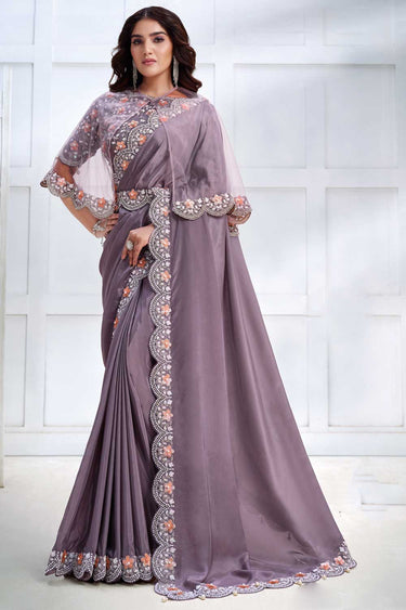 Lavender Color Gorgeous Party Style Crepe Satin Silk Saree