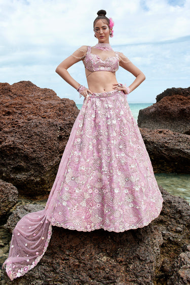 Lavender Color Organza Fabric Sequins Embroidery Lehenga Choli
