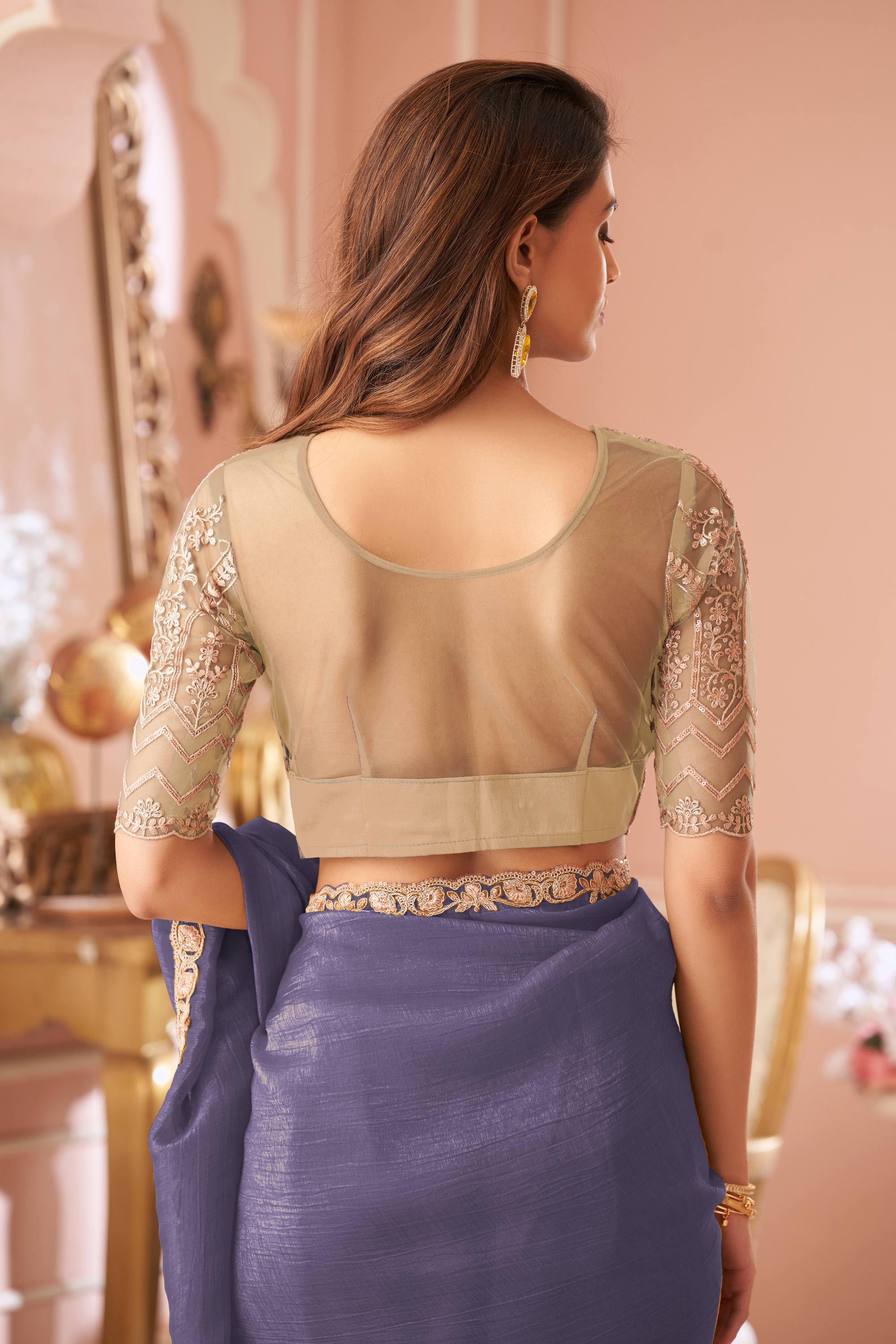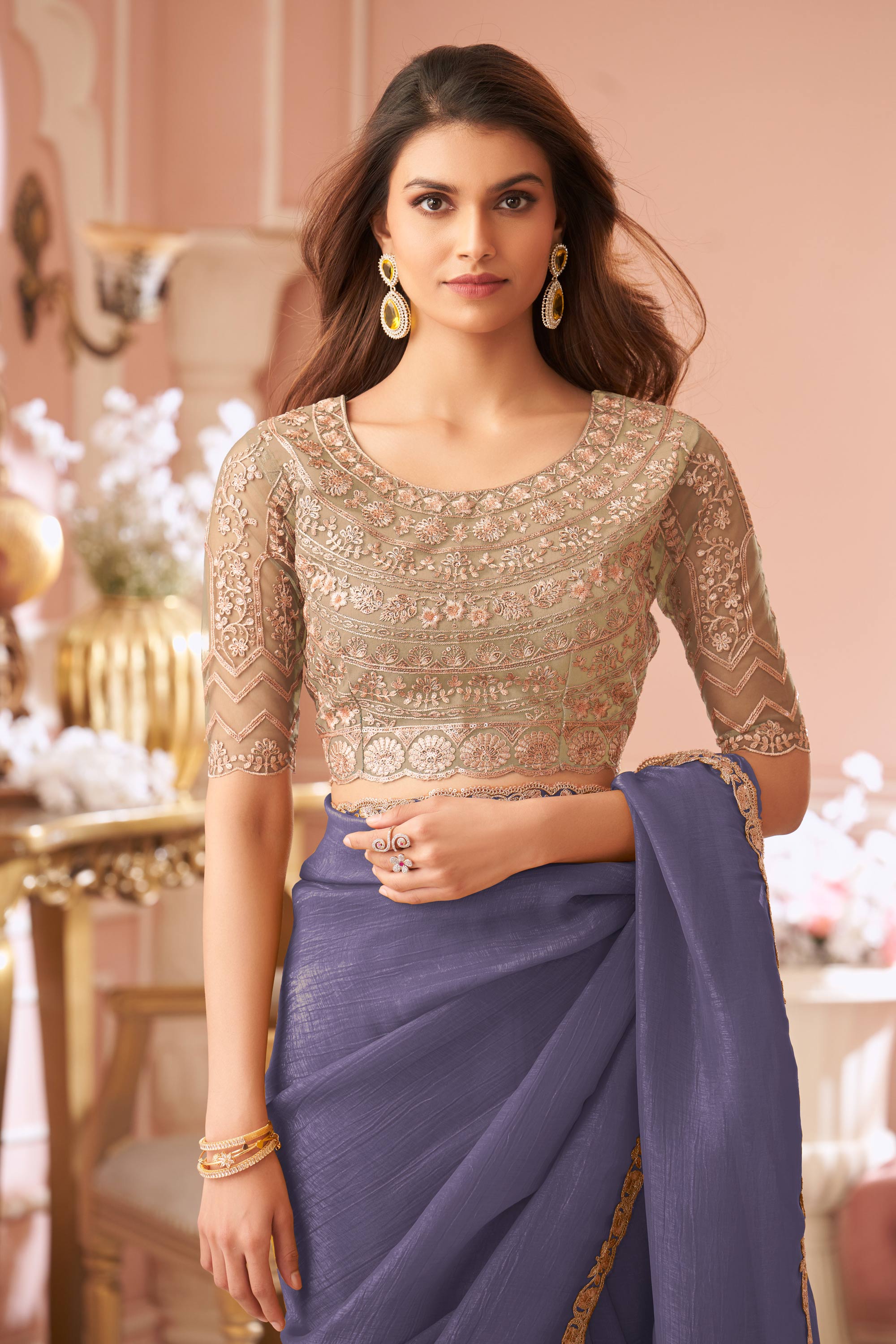 Lavender Georgette Lace Border Work Sangeet Wear Saree