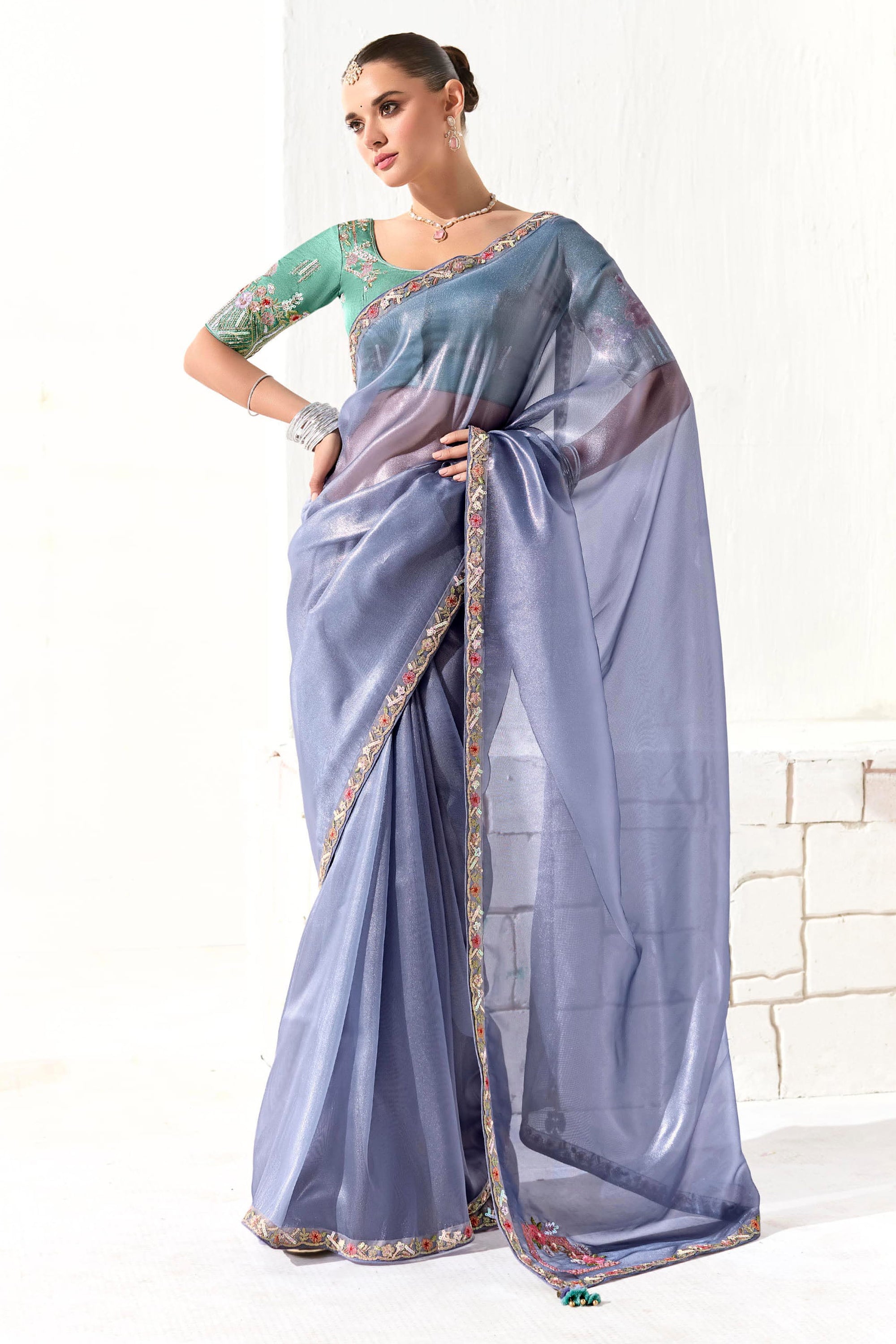 Lavender Organza Lace Border Work Saree For Festive Wear