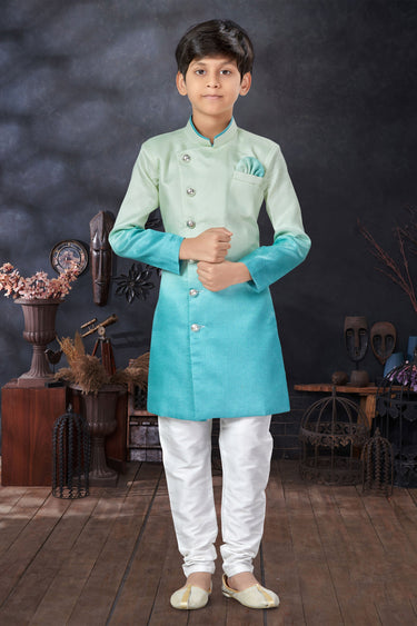 Light Cyan Color Art Silk Fabric Readymade Indo Western For Boys