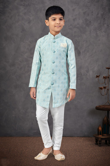 Light Cyan Color Trendy Readymade Indo Western For Boys