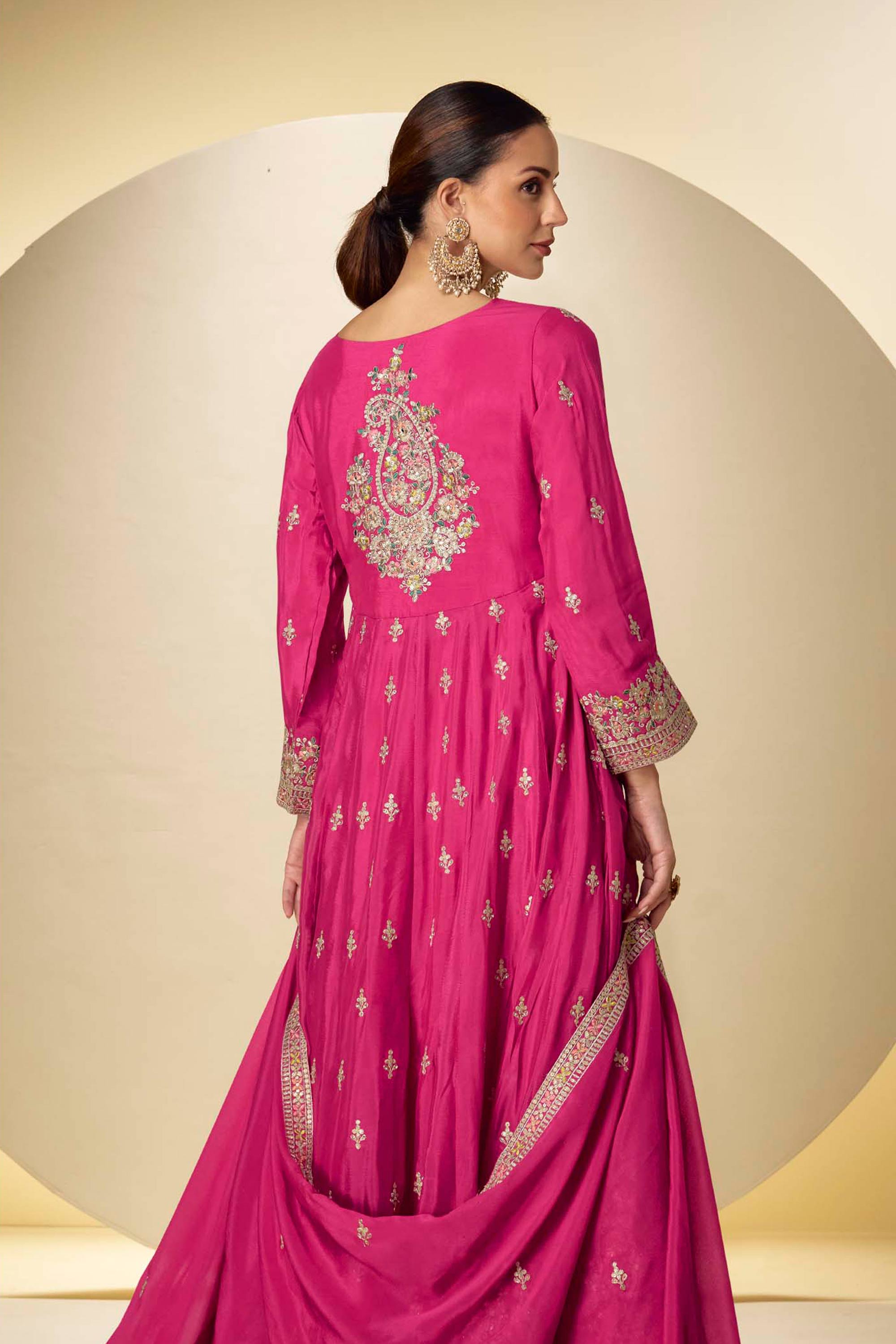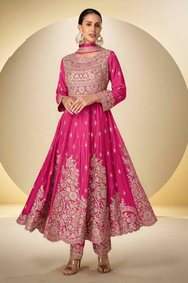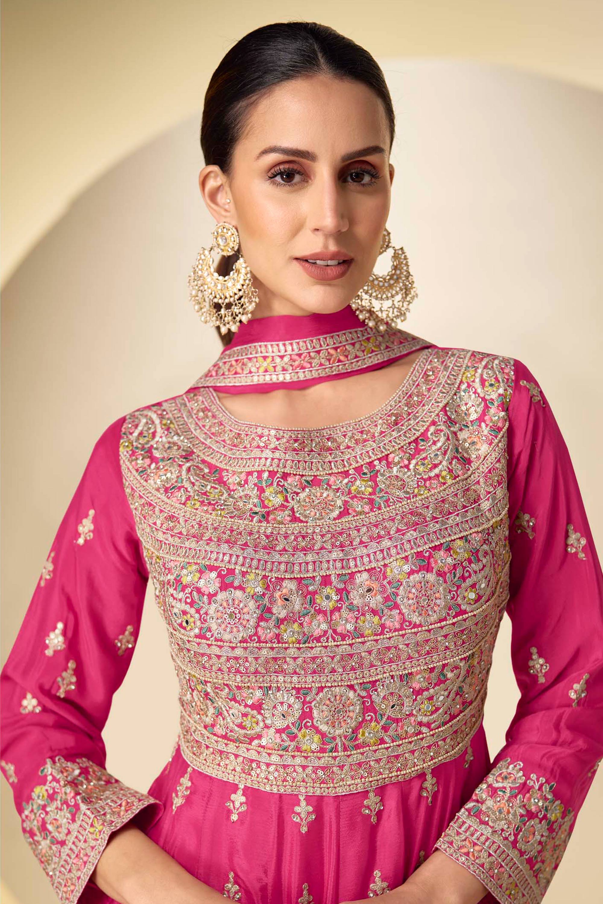 Enhance your ethnic wardrobe with this elegant Chinon Embroidered Anarkali Style Salwar Kameez. Made with high-quality Chinon fabric, this outfit is pre-stitched and ready to wear for your convenience. The intricate embroidery and flowing Anarkali silhouette create a timeless, sophisticated look that’s perfect for weddings, festivals, or evening celebrations. Designed for all-day comfort and grace, the breathable fabric ensures you feel as good as you look. Pair it with statement jewelry or simple accessories to complete your desired style. A perfect blend of tradition and modern aesthetics for women who love a touch of class.