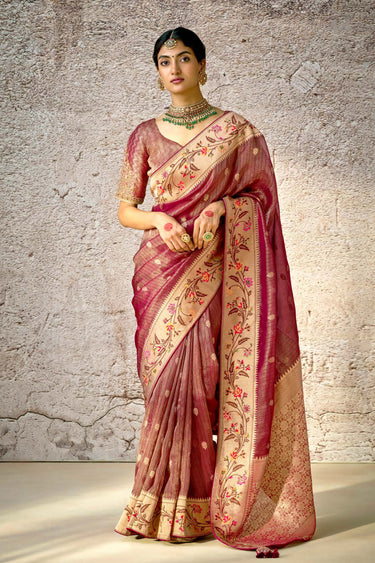 Magenta Woven Party Wear Banarasi Silk Saree