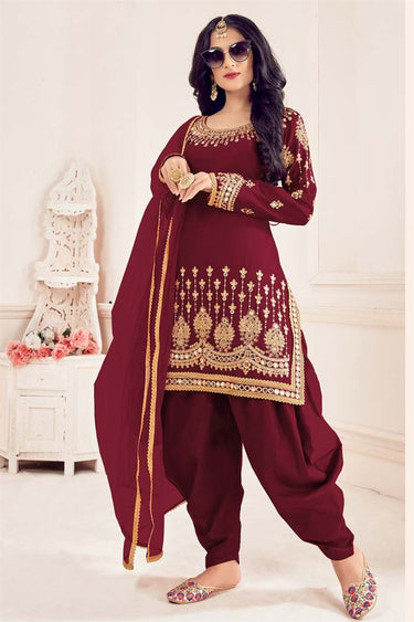 Maroon Color Art Silk Fabric Festival Wear Embroidered Riveting Patiala Suit
