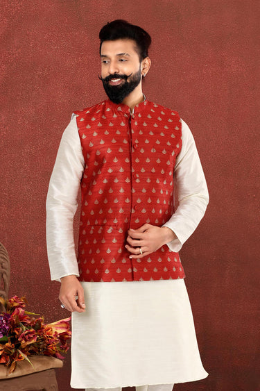 Maroon Color Jacquard Silk Fabric Function Wear Readymade Men Jacket