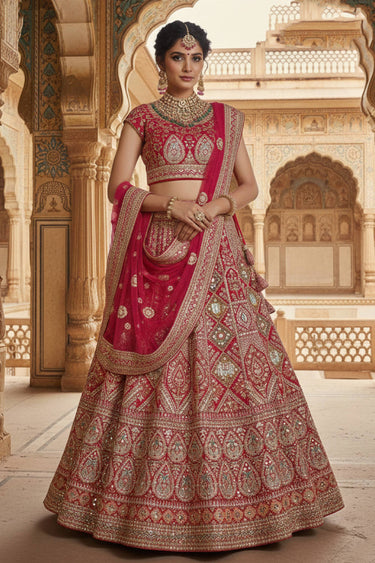 Maroon Velvet Fabric Embroidered Bridal Lehenga Choli