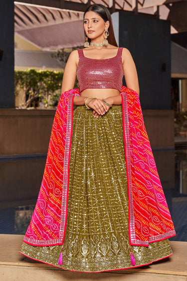 Mesmeric Olive Color Sequins Embroidered Lehenga In Georgette Fabric
