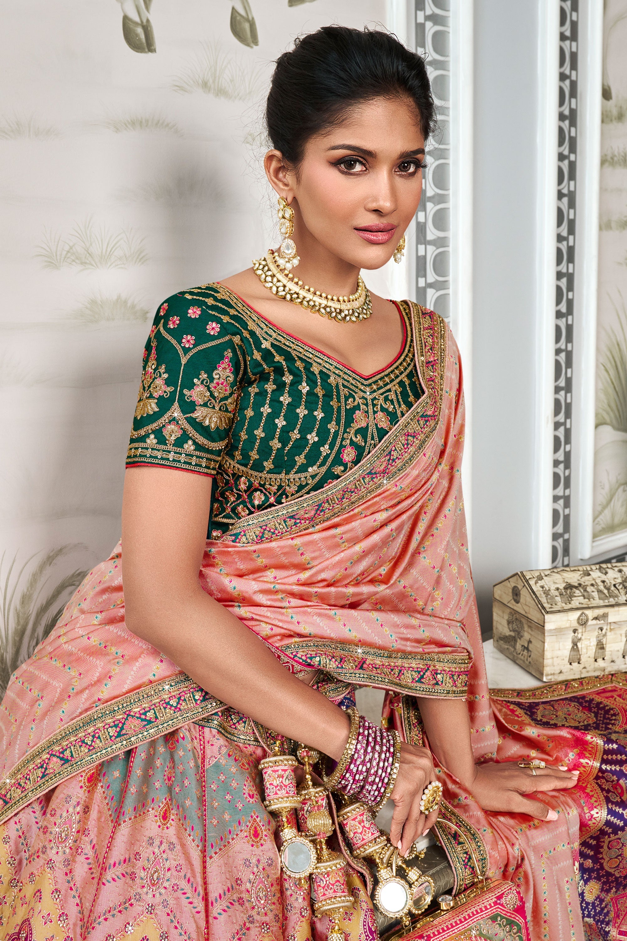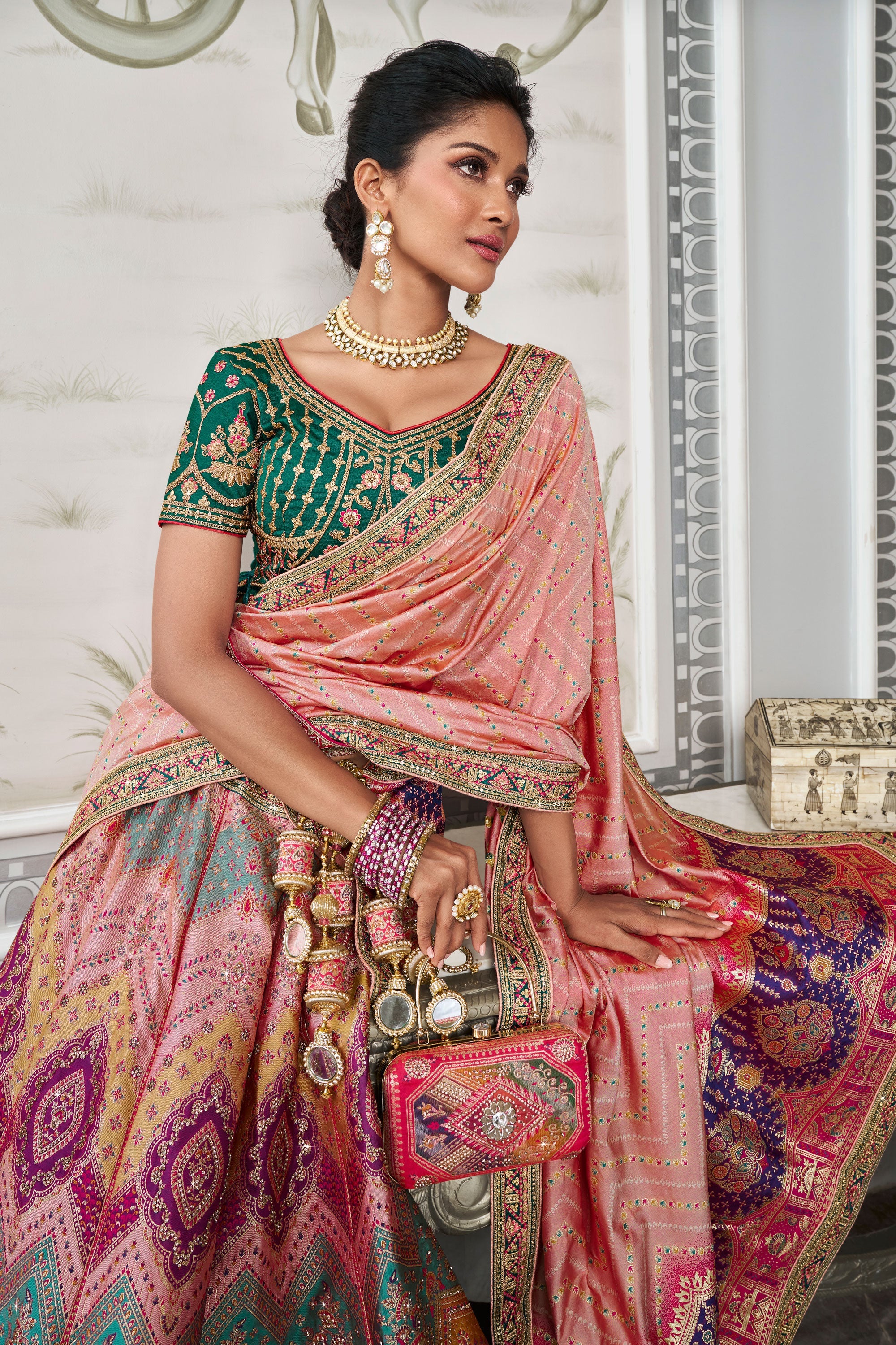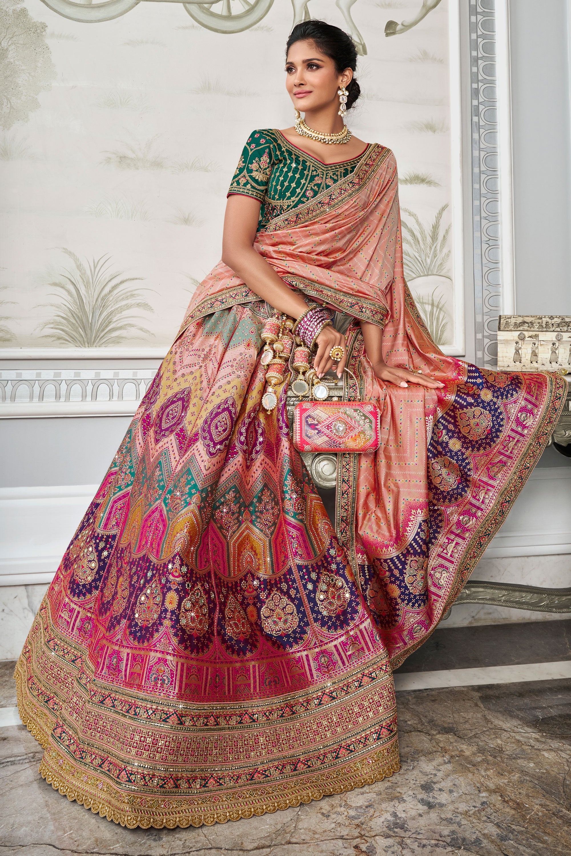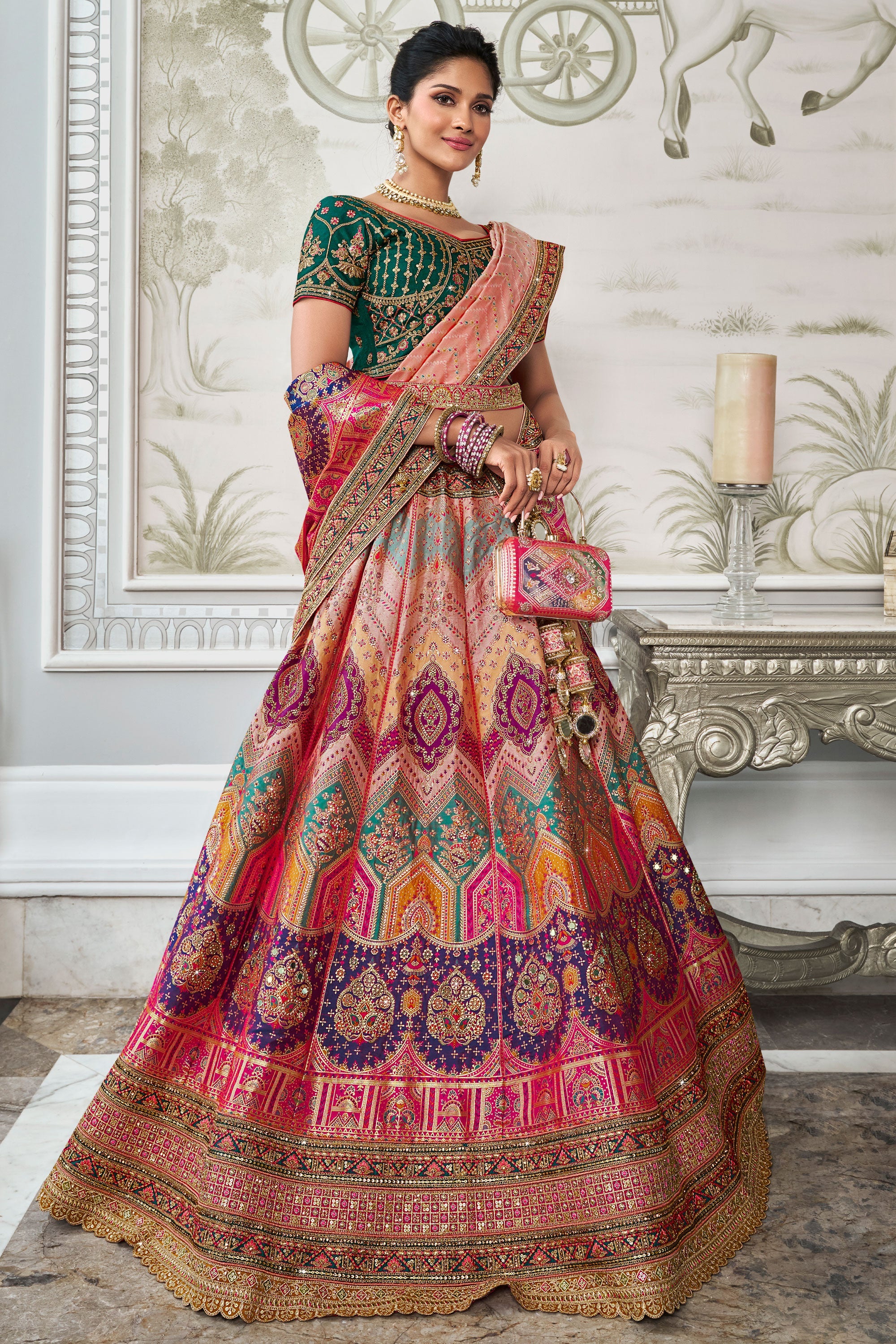 Multi Color Banarasi Silk Fabric Bridal Lehenga Choli