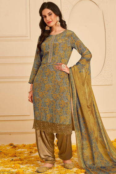Multi Color Crepe Printed Casual Patiala Salwar Suit