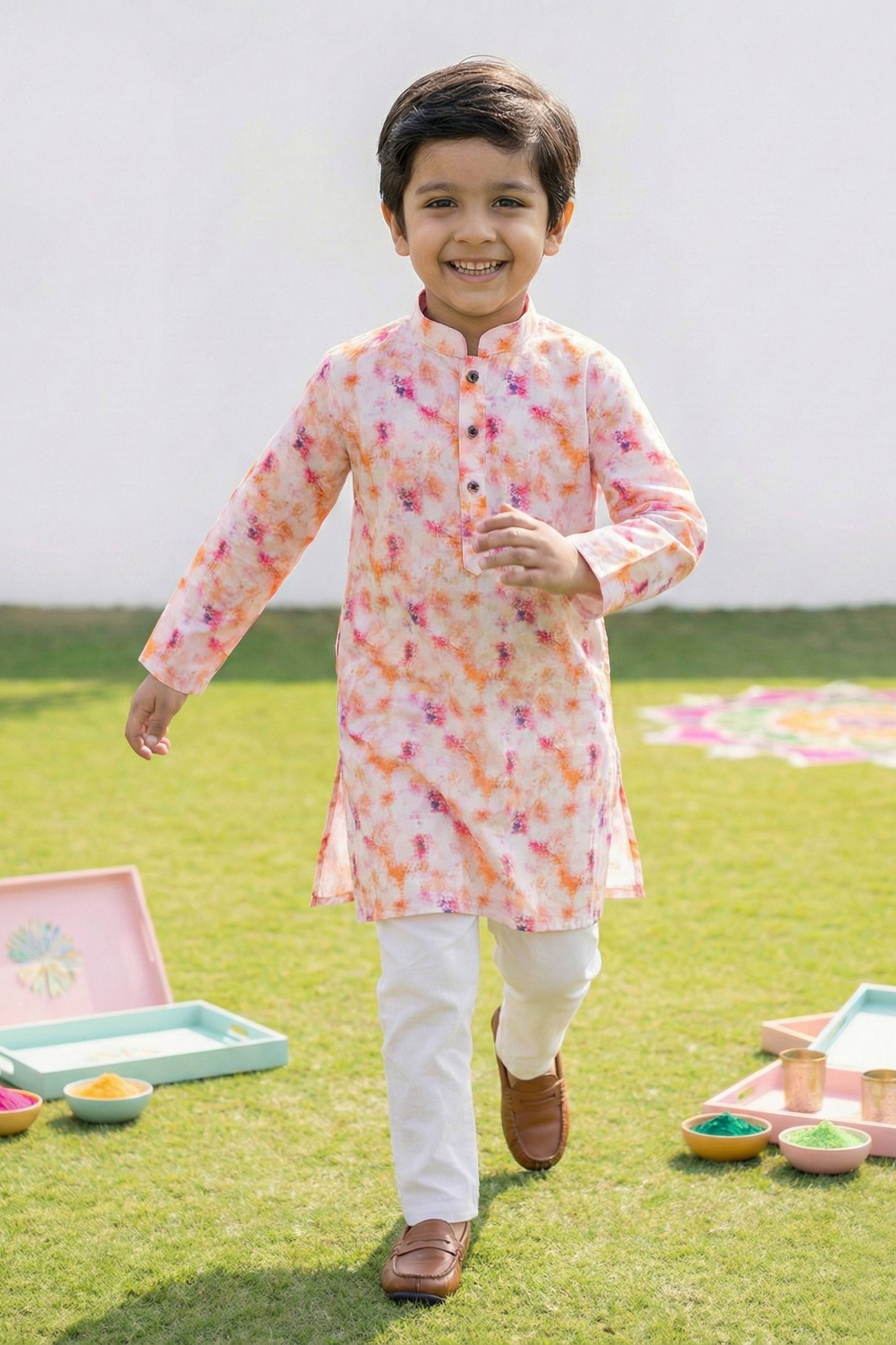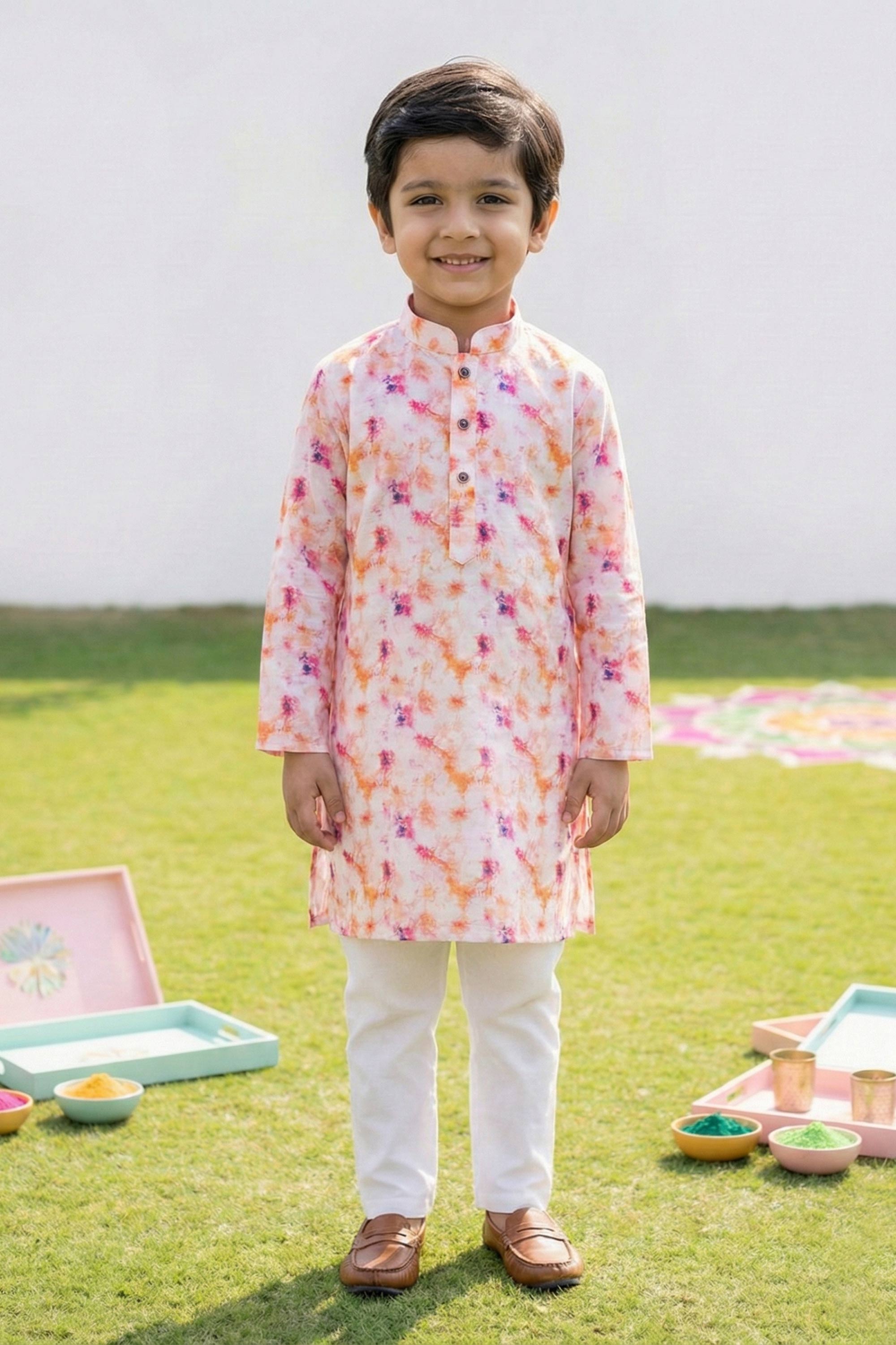 Multi Color Festive Wear Printed Cotton Readymade Kurta Pyjama For Boys