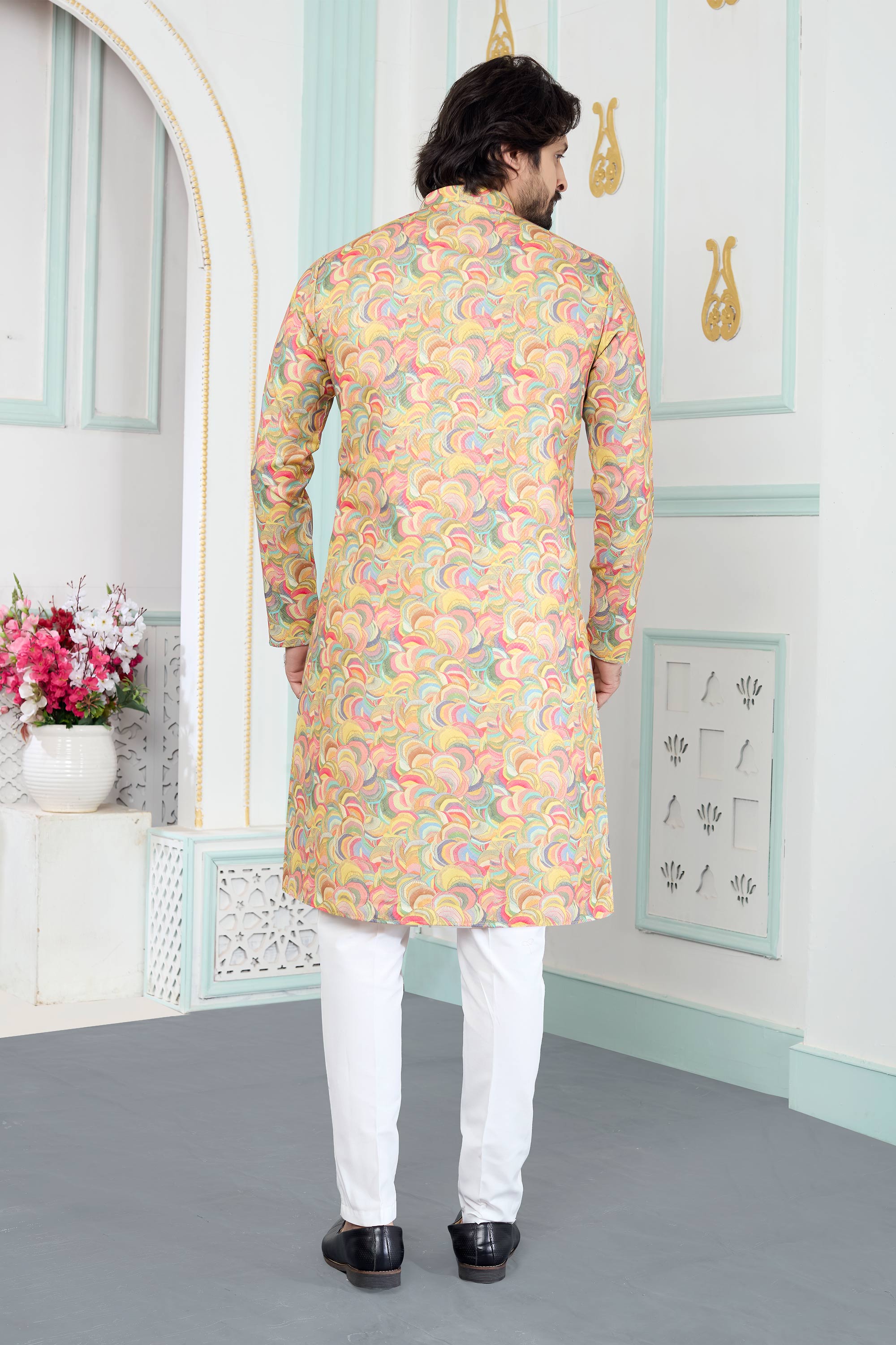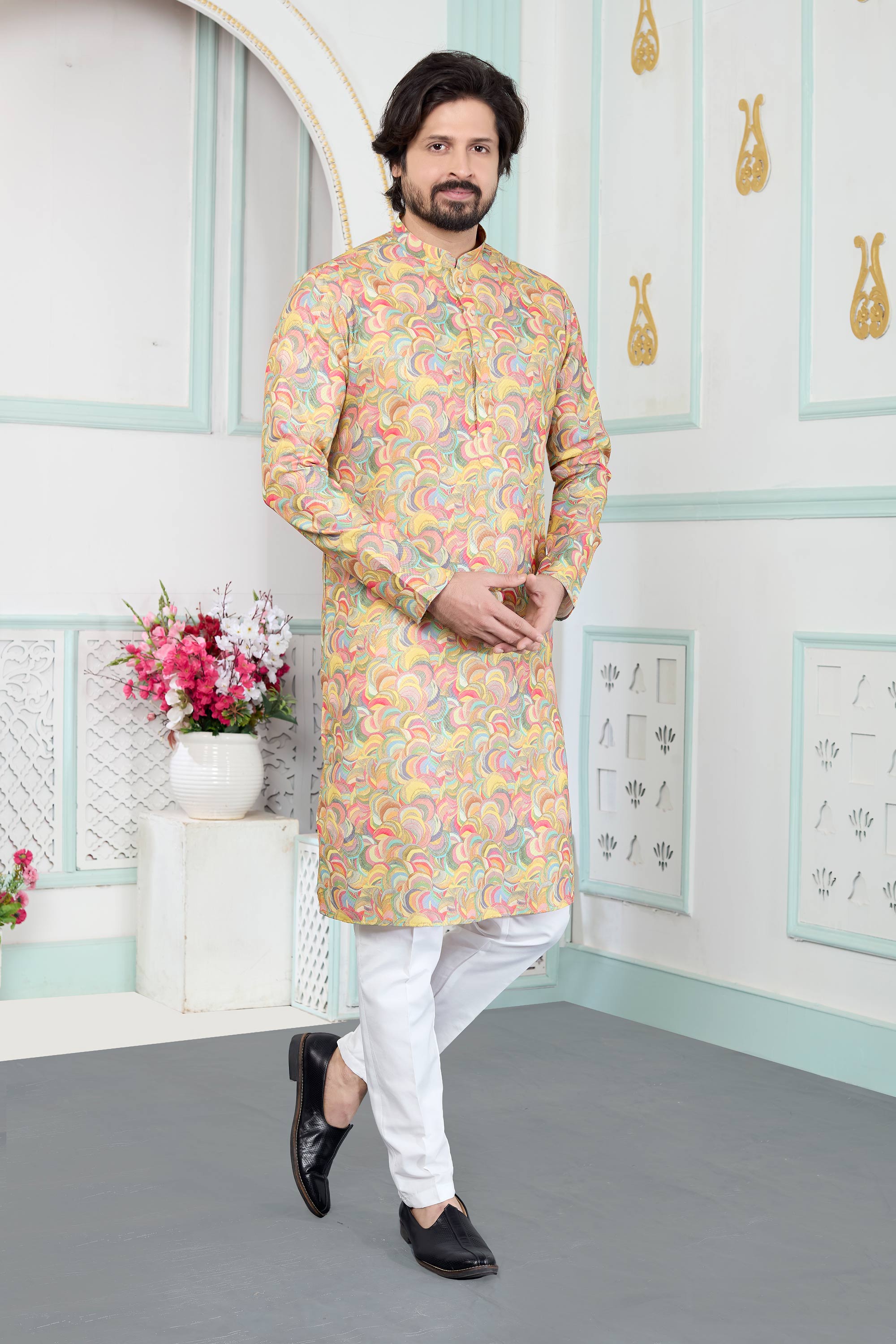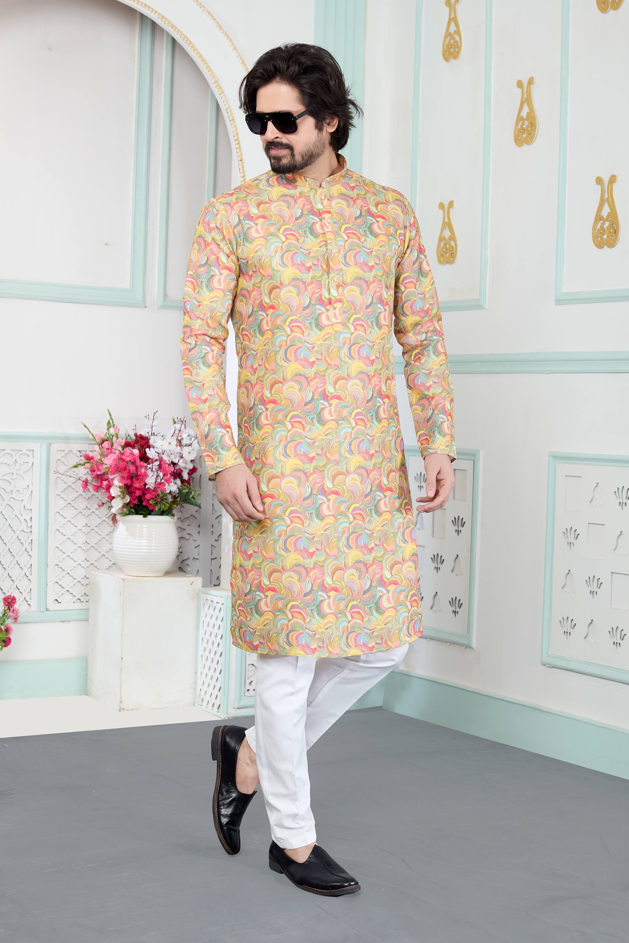 Multi Color Function Wear Art Silk Readymade Kurta Pyjama For Men
