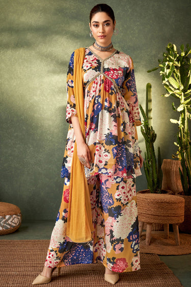 Multi Color Printed Chinon Readymade Palazzo Suit