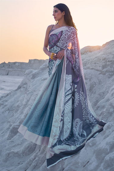 Multi Color Pure Satin Crepe Saree And Digital Printed Blouse