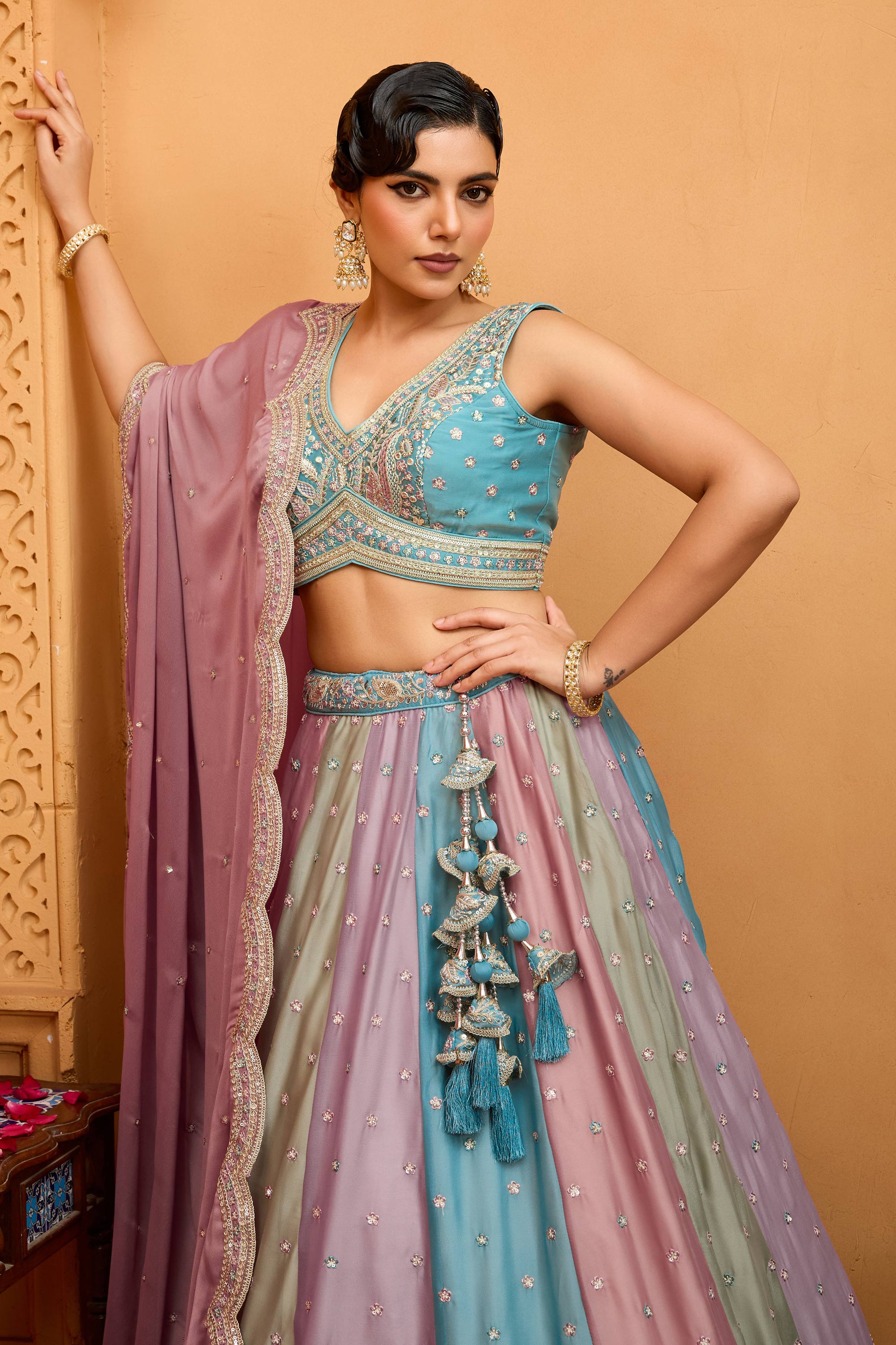 Multi Color Wedding Wear Georgette Lehenga Choli